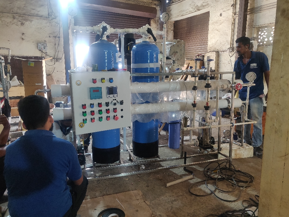 1000 LPH drinking water plant is in testing process, system use for RO water in pharmaceutical production process
