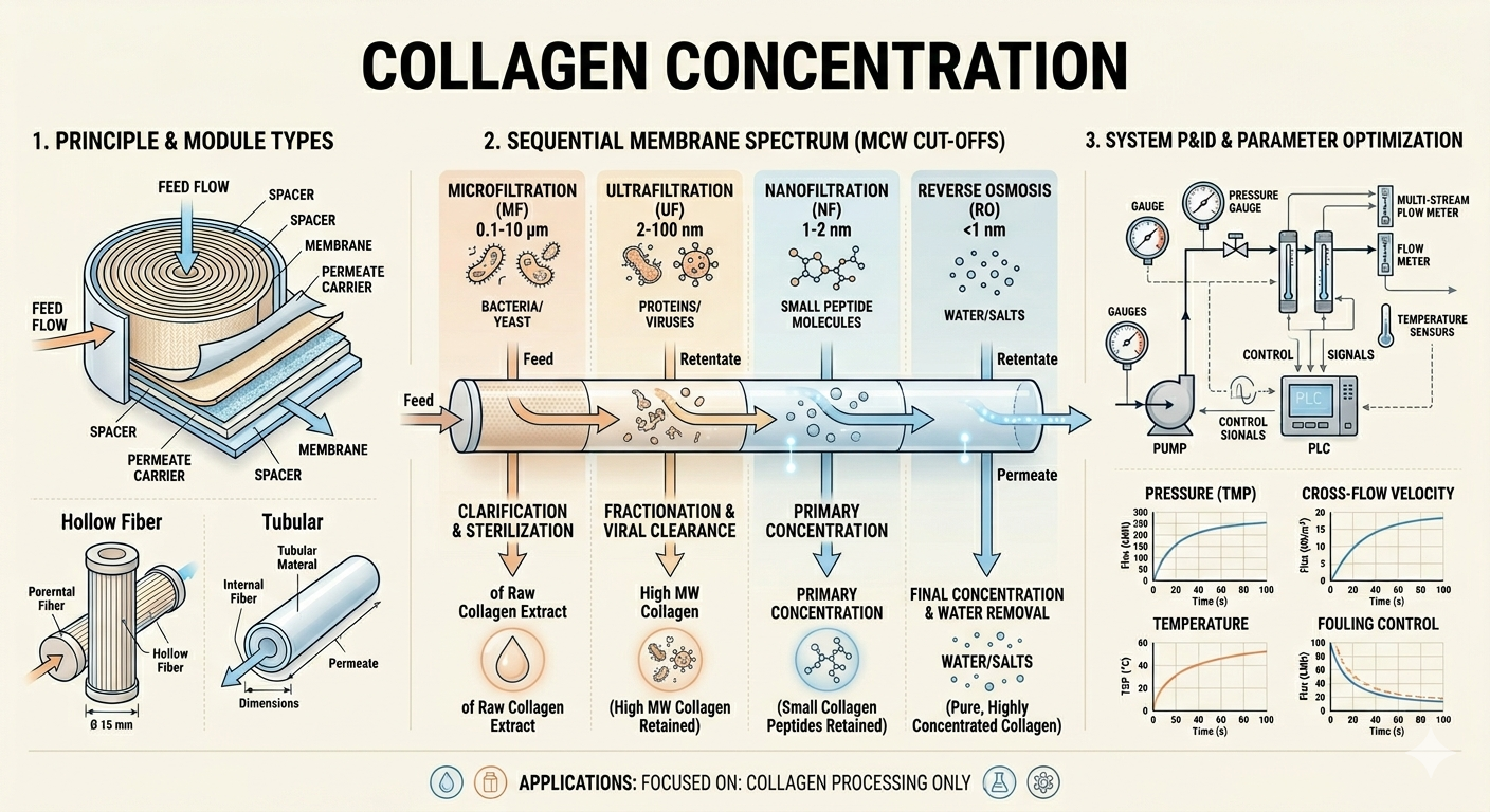 Most people think collagen is just a powder in a tub. We know it’s a journey of Extreme Boundaries. 🚪✨ We’re taking raw extracts and putting them through the 'Vibe Check' of the decade: MF: The Bouncer. No bacteria allowed. 🚫🦠 UF: The Curator. Only the elite proteins stay. 🧬 NF/RO: The Closer. Pure concentration. No filler, all killer. 💧➡️🔥 It’s not just filtration; it’s a molecular level glow-up. Science looks good on you. #CollagenTech #MolecularGlowUp #MembraneMagic #EngineeringBeauty #ProcessEngineering #CollagenConcentrate #TechStyle #NoHeatNoProblem #BioTech #ChemicalEngineering #CollagenProduction #MembraneTechnology Collagen Membrane Filtration System Ultrafiltration for Collagen Peptides Industrial Collagen Concentration Cold-Processed Collagen Technology Membrane Separation for Bio-actives Low-Temperature Protein Recovery